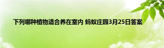 蚂蚁庄园小课堂当中会给玩家带来有趣的答题玩法,玩家只要通过回答出这些问题的正确答案就可以拿去到一定的饲料奖励,3月25日的最新问题已经给玩家更新出来,今天的问题是下列哪种植物适合养在室内?很多玩家不知道答案是什么,下面就让小编给玩家带来3月25日蚂蚁庄园小课堂答案的介绍吧。