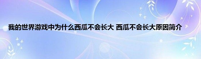 小编今天给各位玩家朋友们带来的是我的世界游戏中为什么西瓜不会长大 西瓜不会长大原因简介,有记得的玩家朋友吗?不记得也没有关系,小编已经帮助大家把我的世界游戏中为什么西瓜不会长大 西瓜不会长大原因简介找了出来,你只需要动动你的小手就可以轻松知道啦,快来瞧一瞧吧。