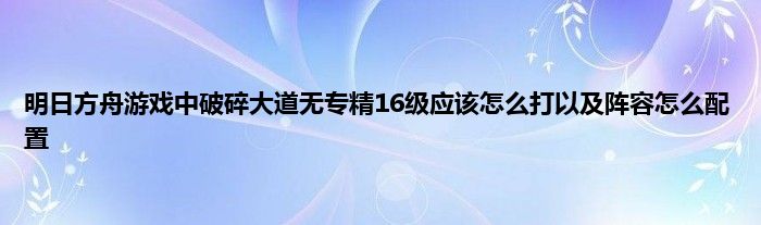 今天来聊聊关于明日方舟游戏中破碎大道无专精16级应该怎么打以及阵容怎么配置的文章,游戏是很多人的选择,但是游戏玩多了也会身心疲惫,现在就为大家来简单介绍下明日方舟游戏中破碎大道无专精16级应该怎么打以及阵容怎么配置,希望对各位小伙伴们有所帮助。