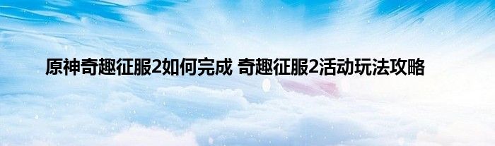 原神奇趣征服2如何完成?原神在这次1.4版本已经上线,这次的新活动玩起来也是和之前不同的。相信不少的玩家对奇趣征服2活动不是很了解,这里就来一起看看具体的具体的完成方法,希望大家喜欢。