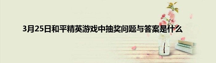 今天来聊聊关于3月25日和平精英游戏中抽奖问题与答案是什么的文章,游戏是很多人的选择,但是游戏玩多了也会身心疲惫,现在就为大家来简单介绍下3月25日和平精英游戏中抽奖问题与答案是什么,希望对各位小伙伴们有所帮助。