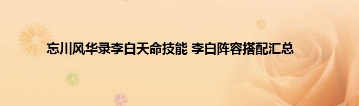 忘川风华录游戏中,诗仙李白无疑是非常受欢迎的开局角色。李白天命技能是怎样的?他和哪些角色有天命羁绊?李白阵容搭配如何选择呢?这里就为大家带来忘川风华录李白天命技能和阵容推荐。