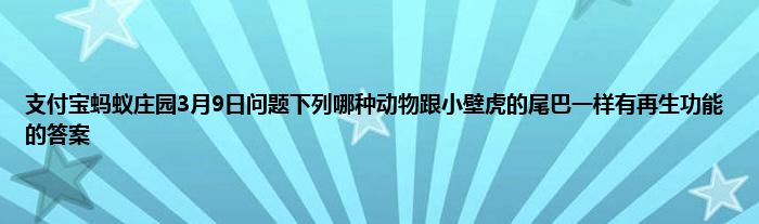 今天弟哥来聊聊一篇关于支付宝蚂蚁庄园3月9日问题下列哪种动物跟小壁虎的尾巴一样有再生功能的答案是什么的文章,游戏是很多人的选择,但是游戏玩多了也会身心疲惫,现在就为大家来简单介绍下支付宝蚂蚁庄园3月9日问题下列哪种动物跟小壁虎的尾巴一样有再生功能的答案是什么,希望对各位小伙伴们有所帮助。