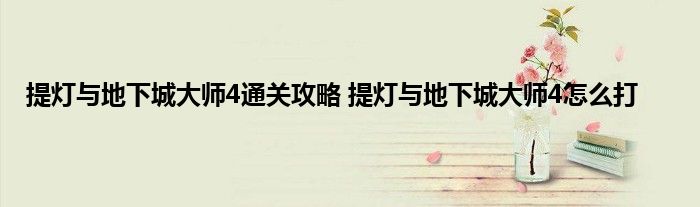 提灯与地下城大师4怎么过?
