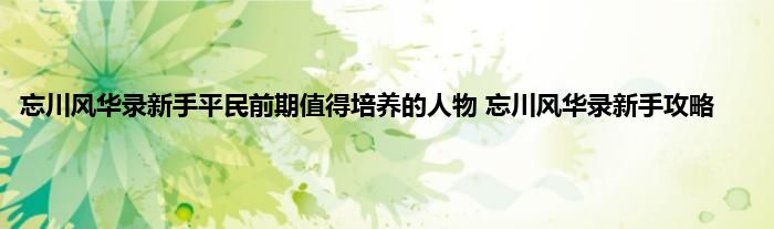 忘川风华录的名士还是蛮多的,前期怎么选择培养名士就成了新手的一大难题。忘川风华录新手平民前期容易获得又值得培养的名士有哪些?一起来看看吧~