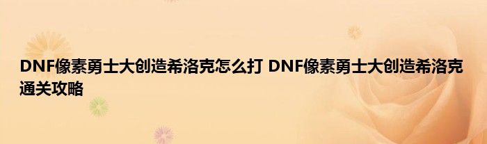 DNF像素勇士大创造希洛克怎么打?DNF像素勇士活动已经开启了最终的boss关卡,这次的boss是大家很很熟悉的希洛克,而她作为这个小活动的boss难度也很高,不仅有超高的攻击力,而且还能回血。那么我们要怎么打过呢?下面就来教大家具体的通关攻略。
