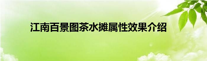 小编今天给各位玩家朋友们带来的是江南百景图茶水摊属性效果介绍,有记得的玩家朋友吗?不记得也没有关系,小编已经帮助大家把江南百景图茶水摊属性效果介绍找了出来,你只需要动动你的小手就可以轻松知道啦,快来瞧一瞧吧。