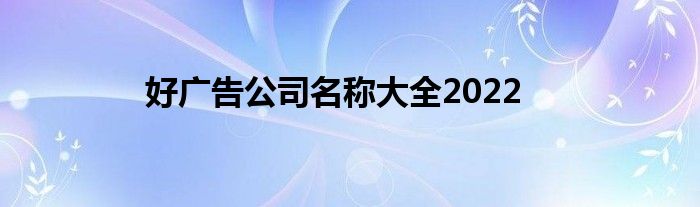 本文好广告公司名称大全2022到此分享完毕,希望对大家有所帮助。
