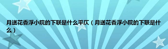 大家好,小科来为大家解答以上问题。月送花香浮小院的下联是什么平仄,月送花香浮小院的下联是什么很多人还不知道,现在让我们一起来看看吧!