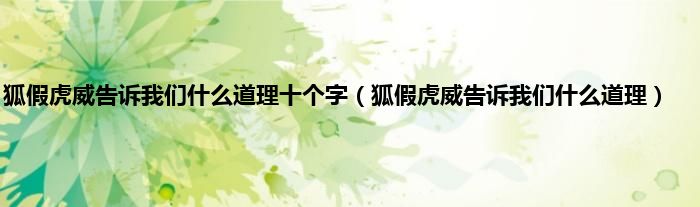 大家好,小科来为大家解答以上问题。狐假虎威告诉我们什么道理十个字,狐假虎威告诉我们什么道理很多人还不知道,现在让我们一起来看看吧!