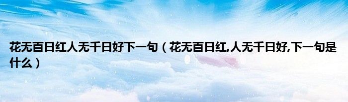 大家好,小科来为大家解答以上问题。花无百日红人无千日好下一句,花无百日红,人无千日好,下一句是什么很多人还不知道,现在让我们一起来看看吧!