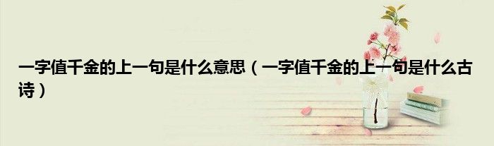 大家好,小科来为大家解答以上问题。一字值千金的上一句是什么意思,一字值千金的上一句是什么古诗很多人还不知道,现在让我们一起来看看吧!