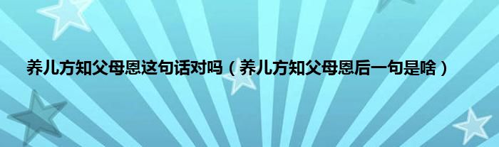 大家好,小科来为大家解答以上问题。养儿方知父母恩这句话对吗,养儿方知父母恩后一句是啥很多人还不知道,现在让我们一起来看看吧!