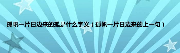 大家好,小科来为大家解答以上问题。孤帆一片日边来的孤是什么字义,孤帆一片日边来的上一句很多人还不知道,现在让我们一起来看看吧!
