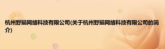 本文关于杭州野猫网络科技有限公司的简介就讲解完毕,希望对大家有所帮助。