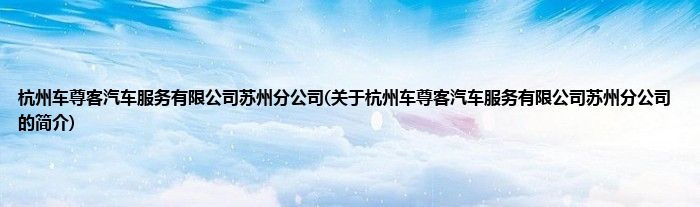大家好,杭州车尊客汽车服务有限公司苏州分公司,关于杭州车尊客汽车服务有限公司苏州分公司的简介很多人还不知道,现在让我们一起来看看吧!