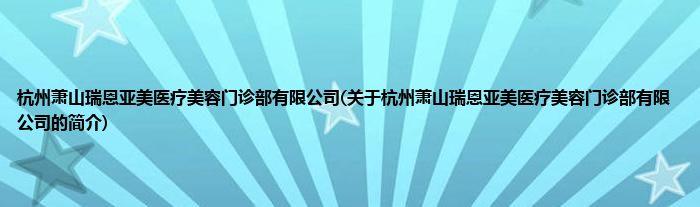 本文关于杭州萧山瑞恩亚美医疗美容门诊部有限公司的简介就讲解完毕,希望对大家有所帮助。