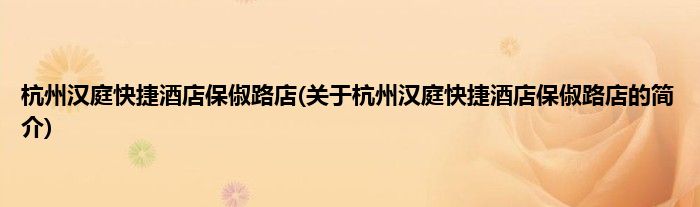 本文关于杭州汉庭快捷酒店保俶路店的简介就讲解完毕,希望对大家有所帮助。