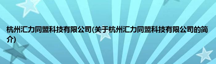 本文关于杭州汇力同盟科技有限公司的简介就讲解完毕,希望对大家有所帮助。