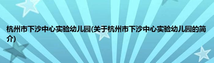 1、 杭州市下沙中心实验幼儿园是位于杭州下沙经济技术开发区南苑路以北的幼儿园。