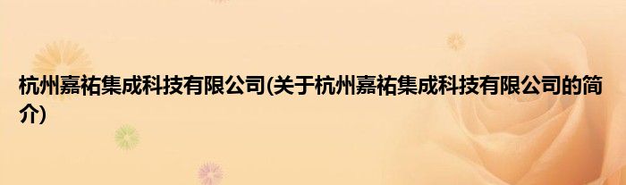 本文关于杭州嘉祐集成科技有限公司的简介就讲解完毕,希望对大家有所帮助。