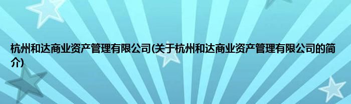本文关于杭州和达商业资产管理有限公司的简介就讲解完毕,希望对大家有所帮助。