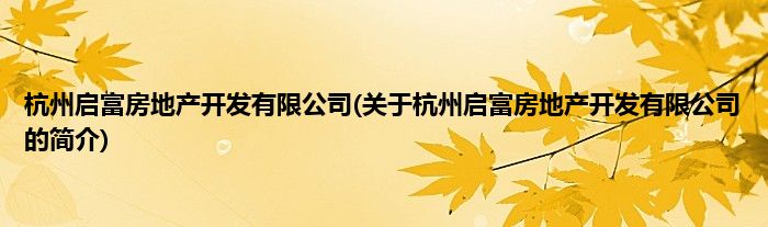 本文关于杭州启富房地产开发有限公司的简介就讲解完毕,希望对大家有所帮助。
