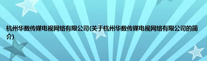 本文关于杭州华数传媒电视网络有限公司的简介就讲解完毕,希望对大家有所帮助。