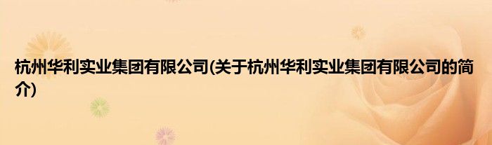 本文关于杭州华利实业集团有限公司的简介就讲解完毕,希望对大家有所帮助。
