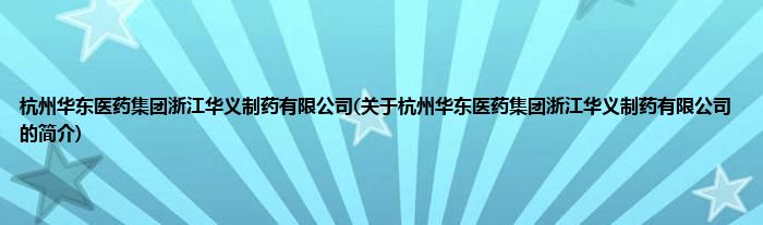 本文关于杭州华东医药集团浙江华义制药有限公司的简介就讲解完毕,希望对大家有所帮助。