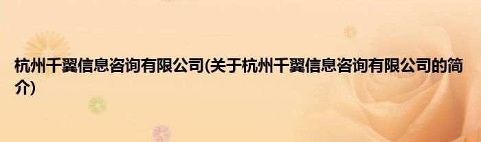 本文关于杭州千翼信息咨询有限公司的简介就讲解完毕,希望对大家有所帮助。