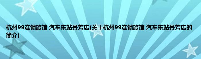 1、 杭州99连锁旅馆(汽车东站景芳店)是位于杭州市商业地段的旅馆。