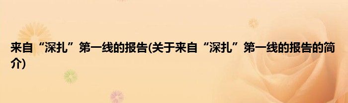 本文关于来自“深扎”第一线的报告的简介就讲解完毕,希望对大家有所帮助。