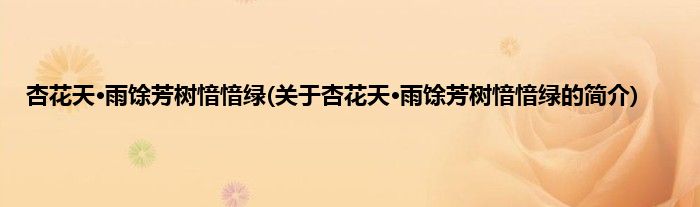 大家好,杏花天·雨馀芳树愔愔绿,关于杏花天·雨馀芳树愔愔绿的简介很多人还不知道,现在让我们一起来看看吧!