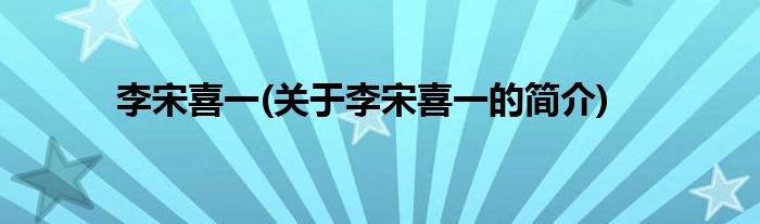 本文关于李宋喜一的简介就讲解完毕,希望对大家有所帮助。