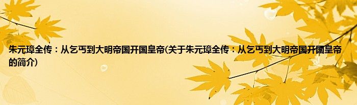 本文关于朱元璋全传:从乞丐到大明帝国开国皇帝的简介就讲解完毕,希望对大家有所帮助。