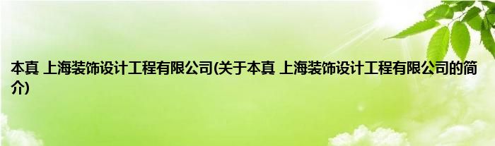 本文关于本真 上海装饰设计工程有限公司的简介就讲解完毕,希望对大家有所帮助。