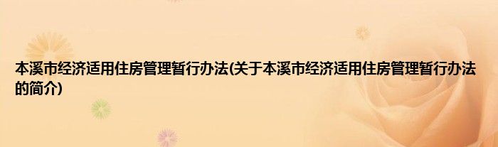 大家好,本溪市经济适用住房管理暂行办法,关于本溪市经济适用住房管理暂行办法的简介很多人还不知道,现在让我们一起来看看吧!