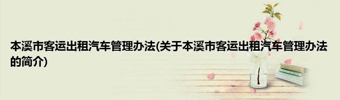 大家好,本溪市客运出租汽车管理办法,关于本溪市客运出租汽车管理办法的简介很多人还不知道,现在让我们一起来看看吧!