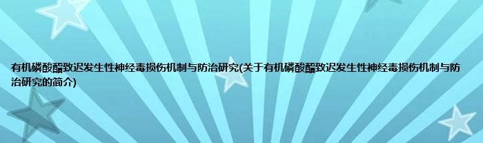 有机磷酸酯致迟发生性神经毒损伤机制与防治研究(关于有机磷酸酯致迟发生性神经毒损伤机制与防治研究的简介)