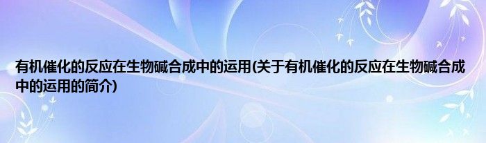 有机催化的反应在生物碱合成中的运用(关于有机催化的反应在生物碱合成中的运用的简介)