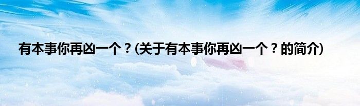 大家好,有本事你再凶一个?,关于有本事你再凶一个?的简介很多人还不知道,现在让我们一起来看看吧!