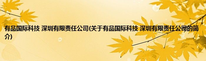 大家好,有品国际科技 深圳有限责任公司,关于有品国际科技 深圳有限责任公司的简介很多人还不知道,现在让我们一起来看看吧!