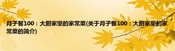 本文关于月子餐100:大厨家里的家常菜的简介就讲解完毕,希望对大家有所帮助。