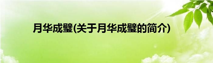 本文关于月华成璧的简介就讲解完毕,希望对大家有所帮助。