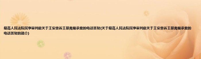 本文关于最高人民法院民事审判庭关于王安贵诉王景斋继承案的电话答复的简介就讲解完毕,希望对大家有所帮助。