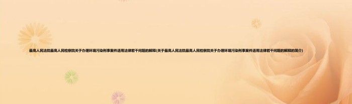 大家好,最高人民法院最高人民检察院关于办理环境污染刑事案件适用法律若干问题的解释,关于最高人民法院最高人民检察院关于办理环境污染刑事案件适用法律若干问题的解释的简介很多人还不知道,现在让我们一起来看看吧!