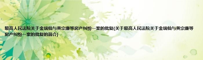 大家好,最高人民法院关于金瑞仙与黄宗廉等房产纠纷一案的批复,关于最高人民法院关于金瑞仙与黄宗廉等房产纠纷一案的批复的简介很多人还不知道,现在让我们一起来看看吧!