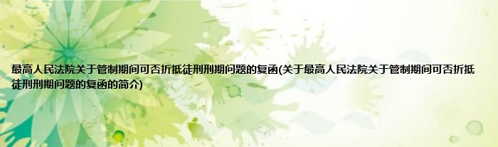 本文关于最高人民法院关于管制期间可否折抵徒刑刑期问题的复函的简介就讲解完毕,希望对大家有所帮助。
