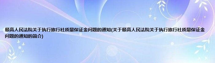 本文关于最高人民法院关于执行旅行社质量保证金问题的通知的简介就讲解完毕,希望对大家有所帮助。